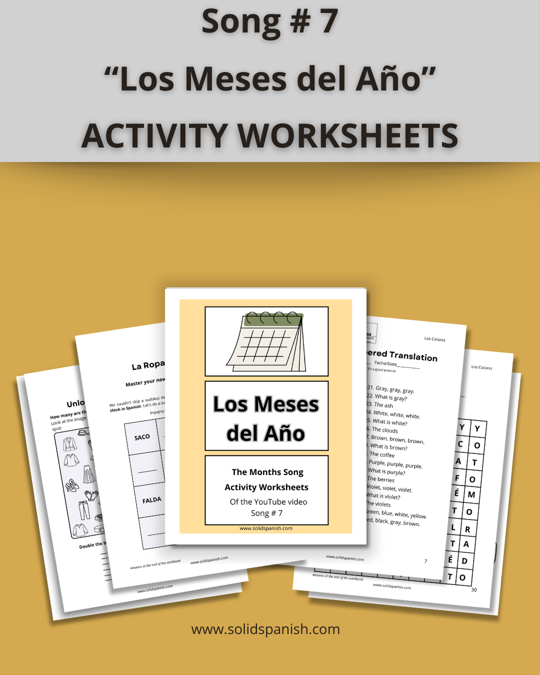Learn Beginner Spanish with Song #7 "Los Meses del Año" / The Months of the Year —Worksheets